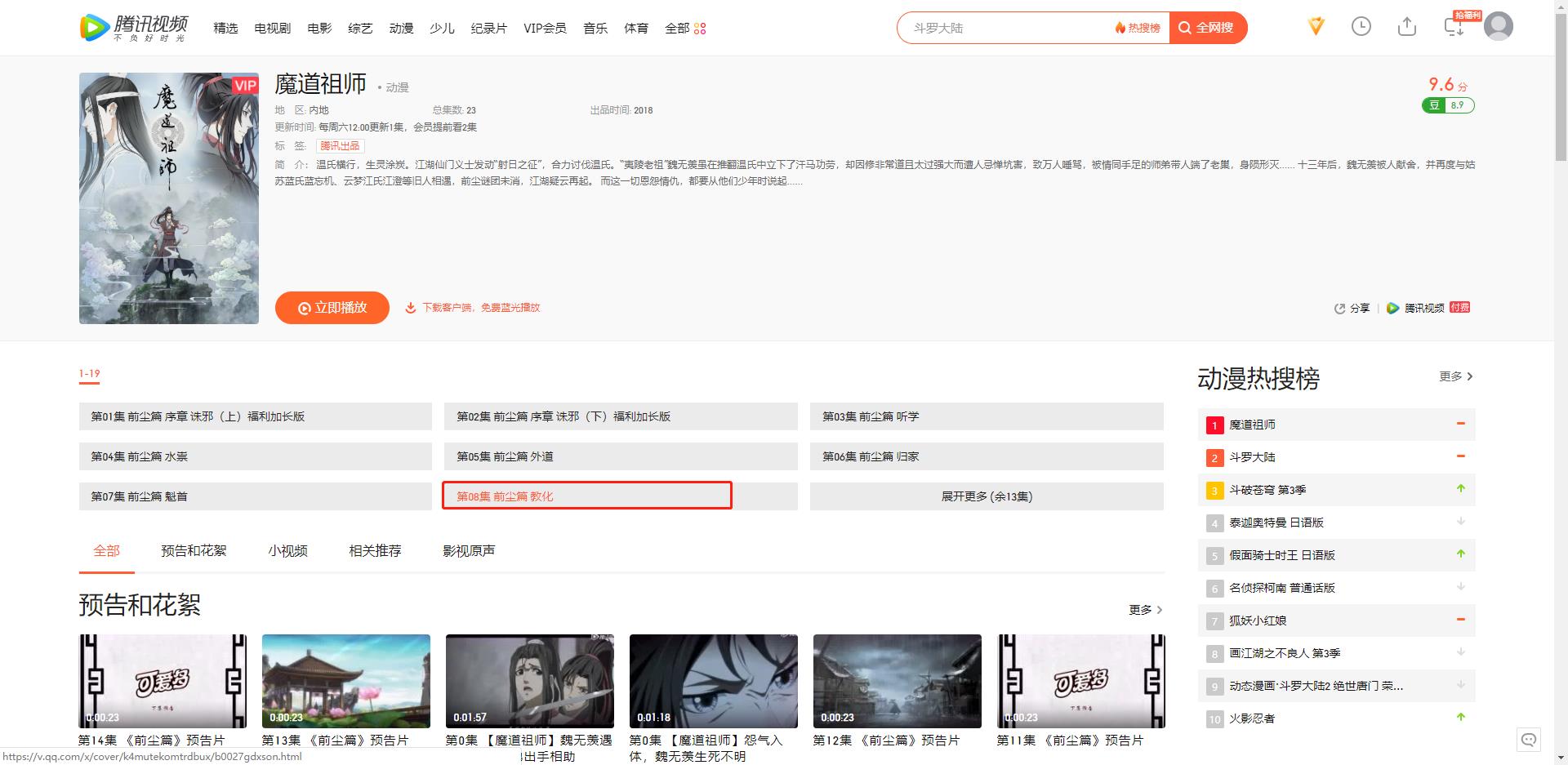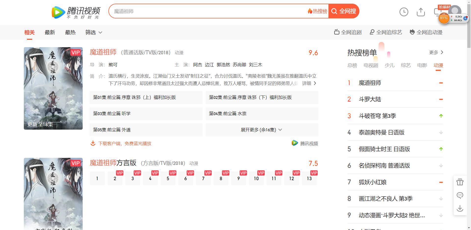 点击出现的第一个《魔道祖师 (普通话版/TV版/2018) 动漫》