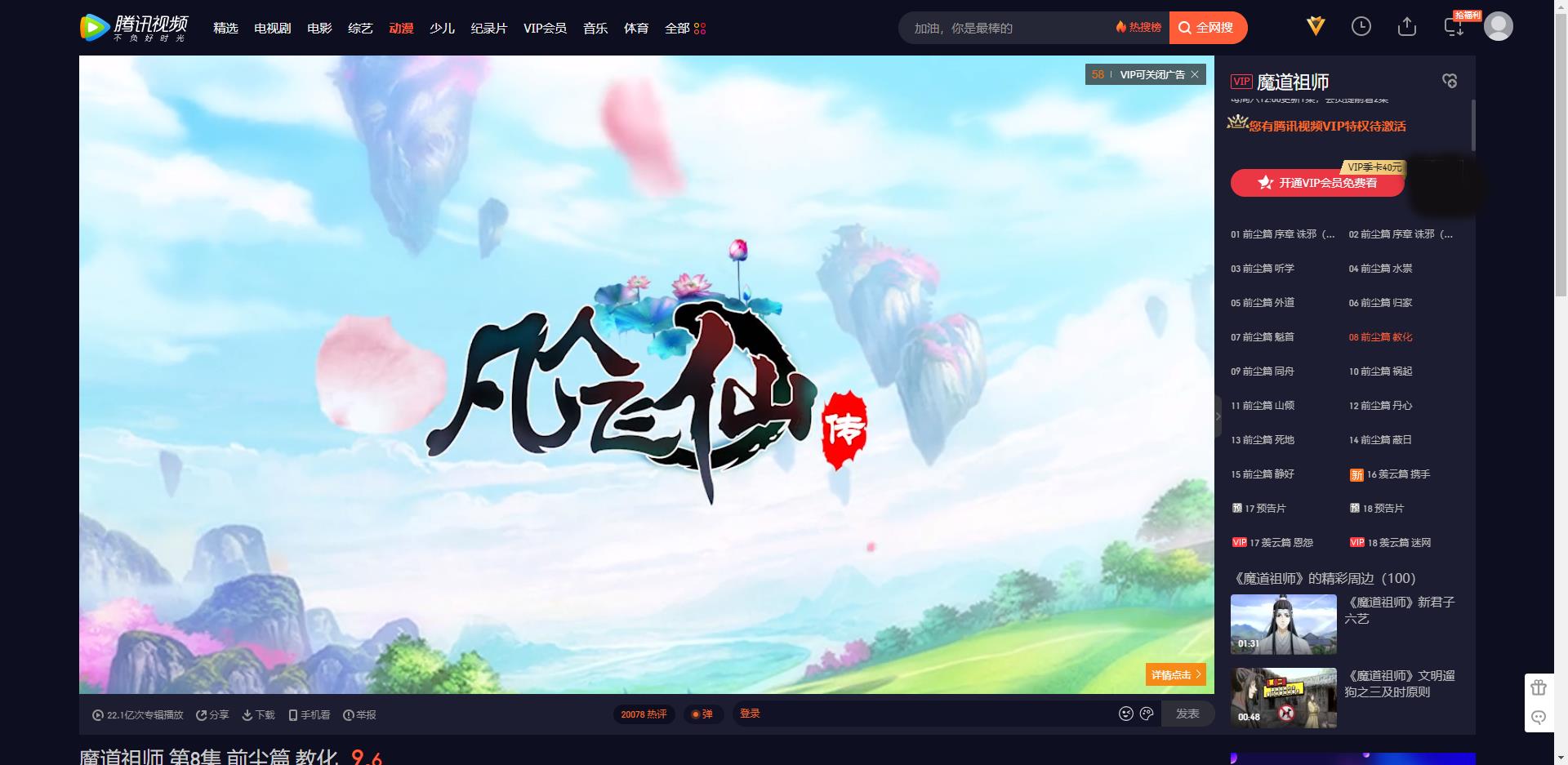 然后我找到了《魔道祖师》的宣传图,里面有腾讯的赞助。我可算是找到了它的播放地址,感觉和自己平时找路一样艰难。