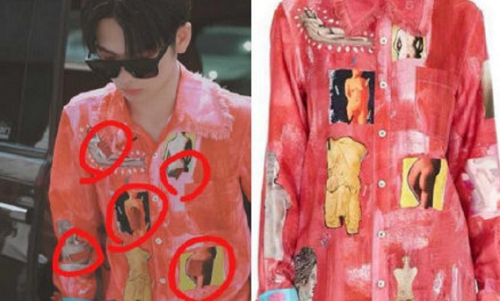 这次出席活动的时候,周震南挑选的衬衫款式是印有艺术图案的粉色款式,但因为这个品牌在这个单品上的图案选择上有些过于暴露了,对于一些比较前卫的人可能觉得没什么,但显然南哥是位很容易害羞的人。因为衣服很可能是造型师精心挑选的,又不能随意更换,所以他只能退而求其次的把上面的印花遮挡起来了,用胶带做了一些手动马赛克,也是让人觉得这个有趣的灵魂果然名不虚传。