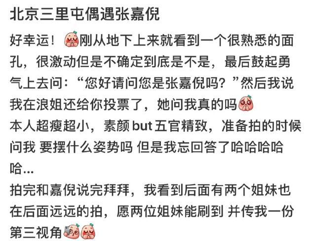 张嘉倪素颜现身街头被偶遇 与网友合照五官精致气质佳