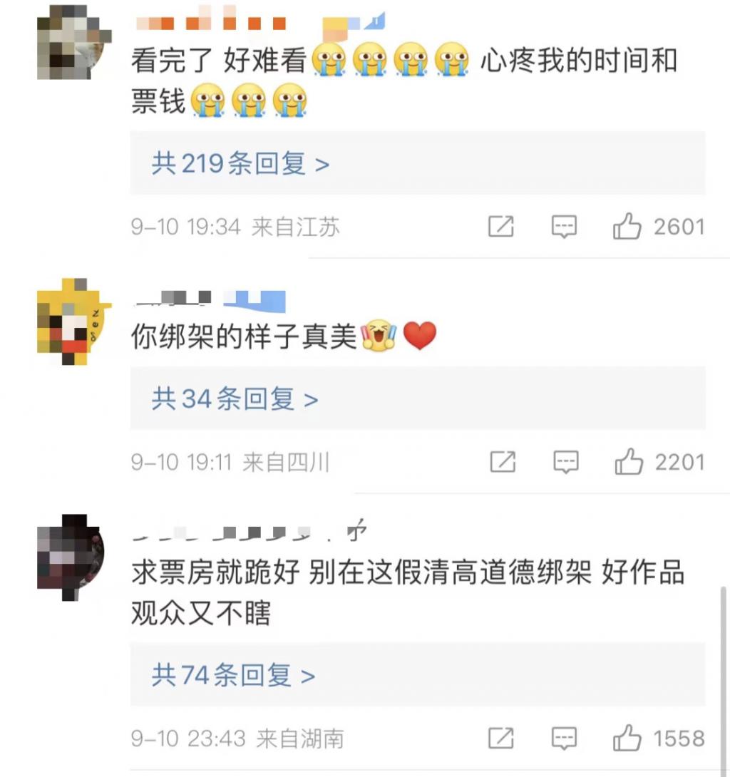 于是恶性循环也产生了——这种宣发方式带来的负面舆论,又会反过来作用于这部片主演的路人缘身上,最近上映的几部文艺片,或多或少都有这样的情况。