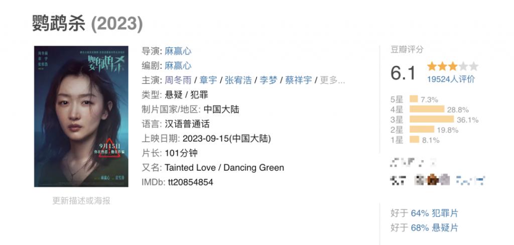 《鹦鹉杀》上映,因为前期参考类似《孤注一掷》的抖音营销,但电影本身是解读性更强的作者型电影,导致观众预期错位,上映后口碑下滑明显。
