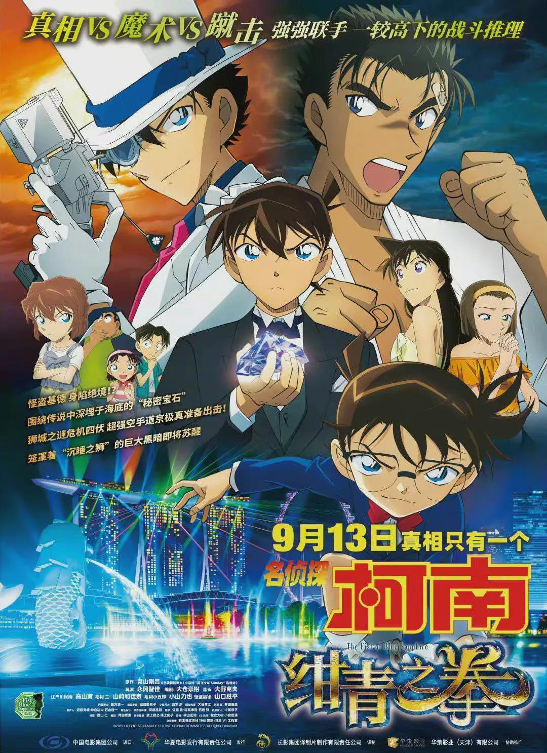 在19世纪末与海盗船一同沉入新加坡近海的、世界上最大的蓝宝石“绀青之拳”。在当地的富豪将其回收,于舞台上展现其真容时,在滨海湾金沙酒店附近发生了杀人案。现场留下了怪盗基德沾有血迹的预告函。