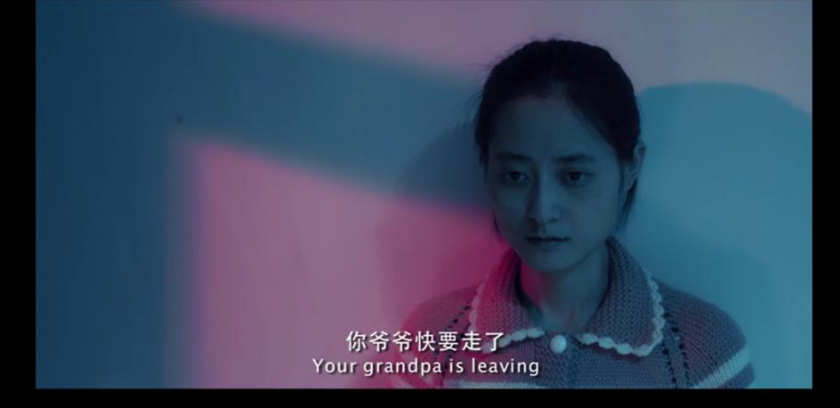 导演将自己儿时记忆中的多重画面塑造成了电影的三个边界——屋内和屋外,梦里和梦外,镜头里和镜头外,写出了一部关于鱼花塘、关于童年和告别童年的散文诗。2020 年是现实世界,叶子正在家里拍关于奶奶的电影;而电影的内容则是 2013 年的世界,也正是爷爷离世的那一年。至于前面那位老人嘴里喊着的 " 老杨 ",正是叶子的爷爷。