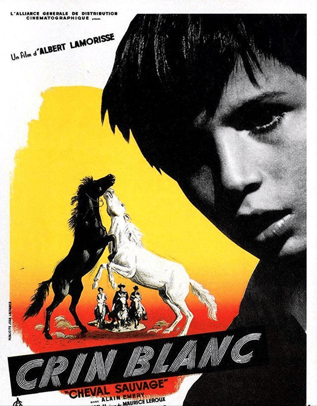 《白鬃野马》是由艾尔伯特·拉摩里斯执导,1953年在法国上映,该片讲述了男孩收养了一匹不堪牧主虐待而逃跑的野马。牧主企图把马赶回来,但儿童已与野马结下友谊,甘愿与野马一起奔进茫茫的大河中。