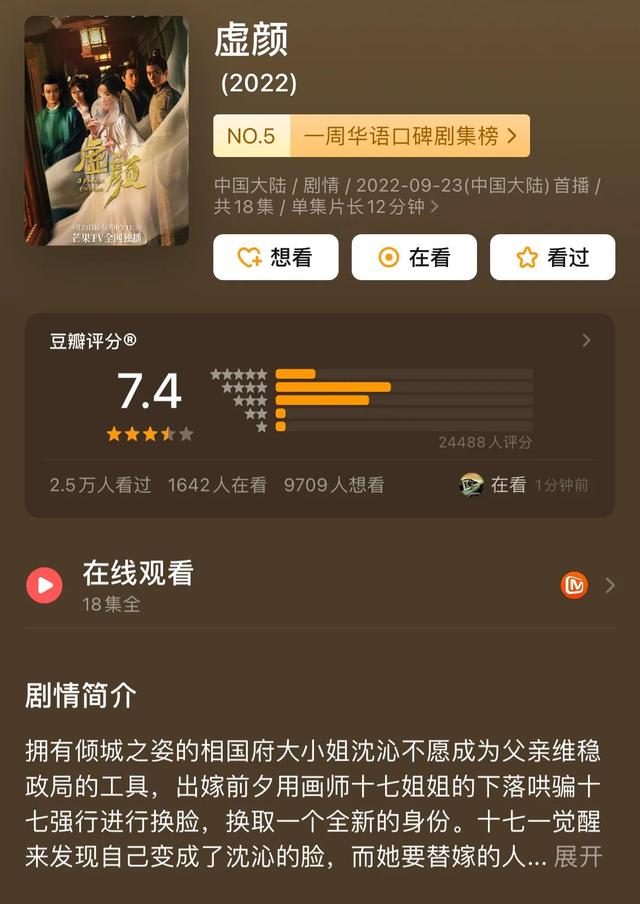 这部网剧一集只有十分钟左右,短小精悍,在今年众多的大制作影视剧中还能够在观众心目中占有一席之地,实属难得。《虚颜》是真正意义上的“三无”作品,演员是十八线开外的小糊糊,拍摄场地也只有一两处,但它愣是出圈了。