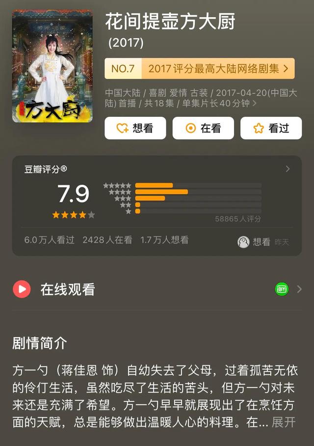 3.《花间提壶方大厨》题材:古装甜宠喜剧
