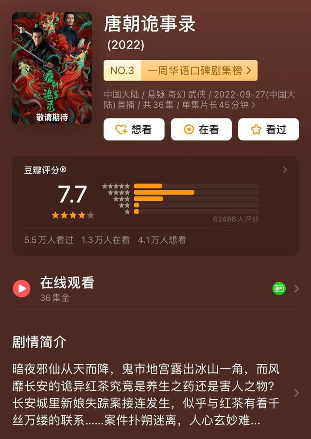 在影视剧神仙打架的2022年,小成本、无流量、无宣发的情况下,《唐朝诡实录》脱颖而出,成为一部口碑好剧,真的太不容易了。