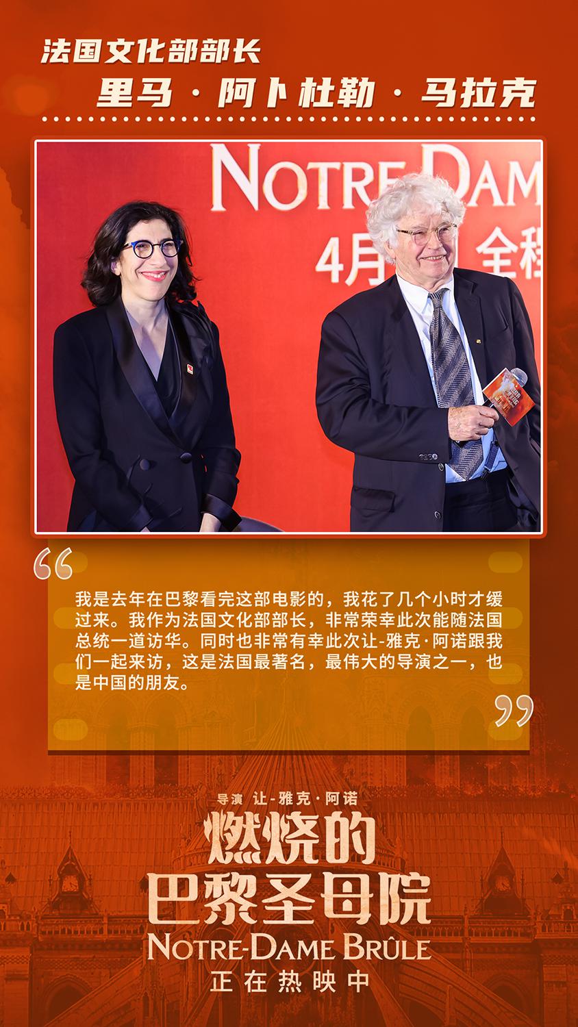 今日上映!法国文化部部长出席《燃烧的巴黎圣母院》电影首映礼