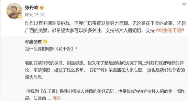 在蒋欣支持陈都灵版的《花千骨》后,赵丽颖版《花千骨》中的东方彧卿的饰演者张丹峰,也站出来支持陈都灵。