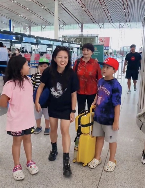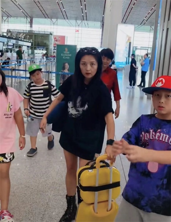 何洁带四个孩子现身机场!儿女丹凤眼像郝子铭,一旁刁磊胡子拉碴