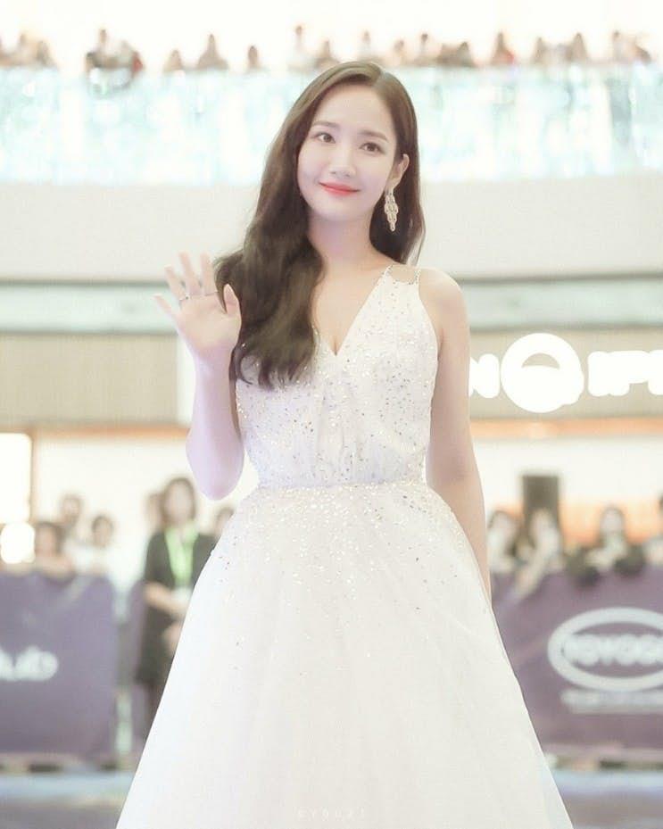 24日(当地时间)颁奖典礼当晚,朴敏英身穿一袭镶着水钻的纯白礼服,梳着一头波浪长发斜披在胸前,举手投足之间散发出高贵优雅的气质。