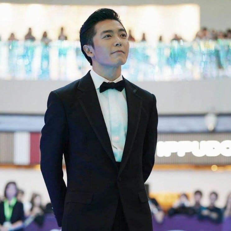 而金材昱则穿着简约却不失隆重的黑色西装套装,配上蝴蝶结领带,十分帅气。