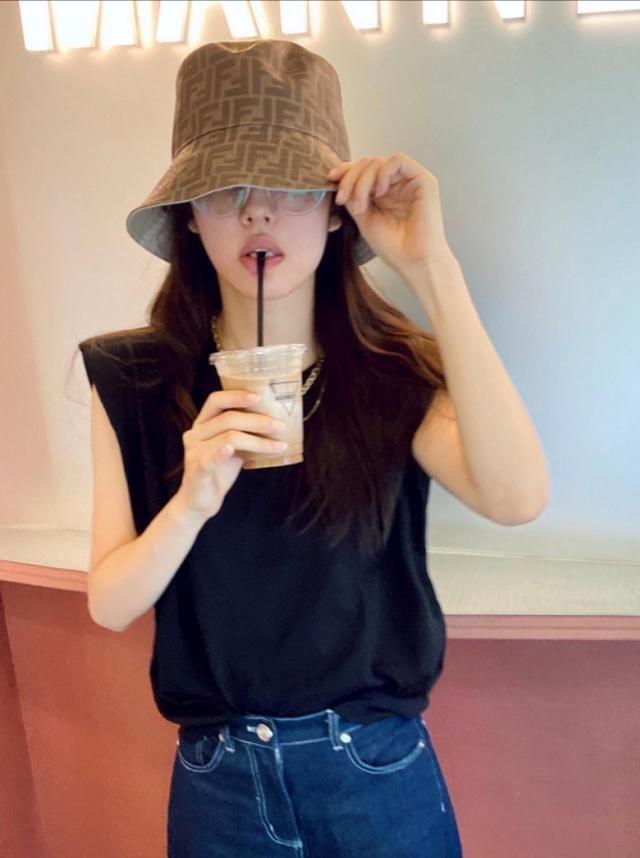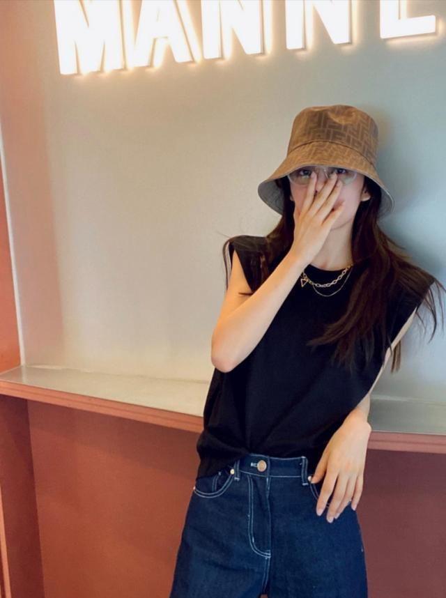其实我们可以发现,如果是酷炫的小姐姐,那么无袖T恤一定是她们不能错过的单品。其实,无袖T恤真的能为我们的穿着增添不少私语和任性。蔡文静选择的黑色还能增加耳语感,搭配脖子上的金色链子不仅能让我们的衣服更时髦,还能增加耳语感。