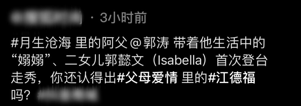 在现实生活中,郭涛的确很宠爱女儿郭懿文,孩子首次登台走秀,他也上场为其壮胆。