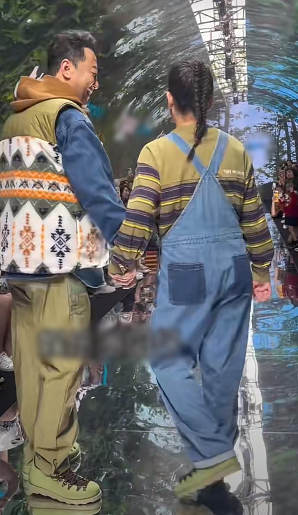 在 T 台上转身时,郭涛似乎察觉到了女儿的紧张,主动牵着她的手,还亲切地与台下观众打招呼,父女俩互动十分温馨。