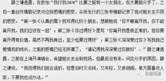 有一天,他奔波累了,坐在人民广场的长凳子上,觉得生无可恋。一个中年人走近他,和他搭讪。薛之谦懒得理他,直到那个人自称他是一家演艺公司的老板。