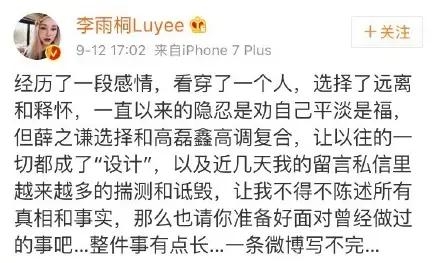 李雨桐后续的微博博文,讲述了一个和公众认知不一样的薛之谦。