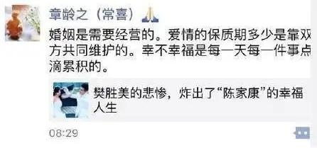 她说:“婚姻是需要经营的,爱情的保质期多少是双方共同维护的。幸不幸福是每一天每一件事点滴累积的。”