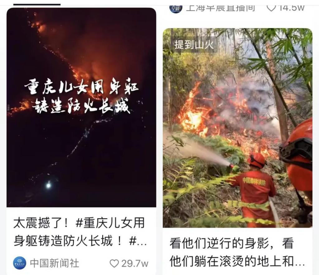 重庆有山火。