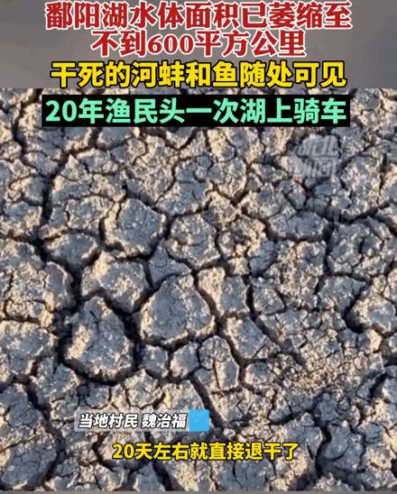 干死的河蚌和鱼虾随处可见,渔民二十多年来,第一次在湖上骑车。