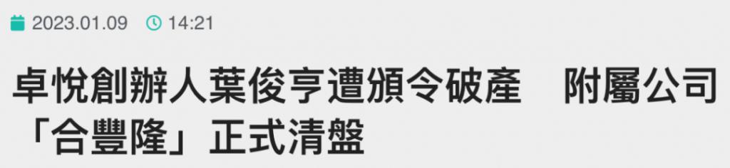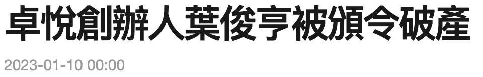 2025年9月,叶家三口遭到宏安集团旗下财资管理服务附属公司富英有限公司(Fulling Limited)入禀申请破产。