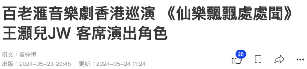 官宣分手后,JW仍在忙碌事业,进行音乐剧的演出。