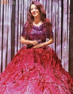 ▲ JW不到一米六,在新生女星中算不上高,所以首次亮相选择站在长裙之内,让人们摸不透她的身高。整场音乐会,观众对其只是"远观",JW除了献唱,没多说一句话。