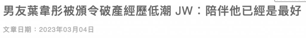 2025年,叶韦彤跟其父母三人皆成为破产者,且被卓悦集团公告早就遭一手创立的公司踢出了局。外界从那时起就认定,JW的这段恋情注定是要走向分道扬镳的结局。