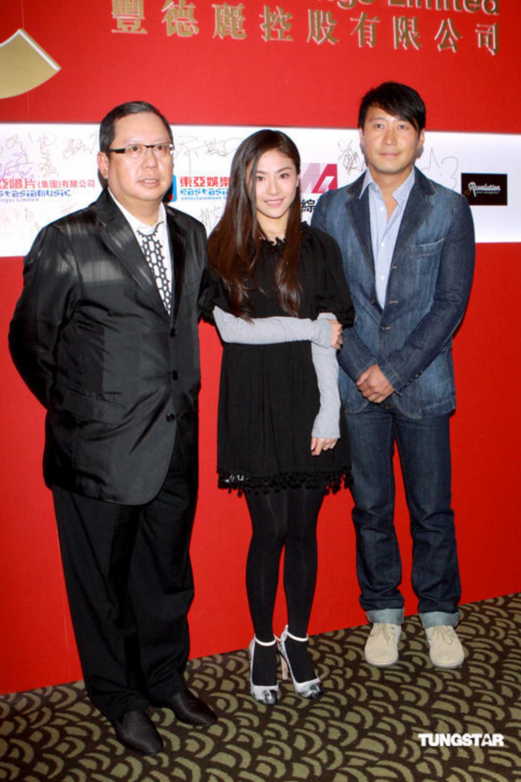 ▲ 林建岳(图左)是丽新集团创办人林百欣之子,关于他们家的家族故事,我们之前详细写过,点这里。图上是林建岳、黎明和他们签约的以"小张柏芝"名号出道的贡米(居中)。