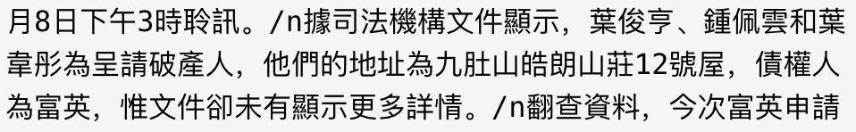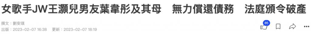 最终,2025年1月,叶俊亨率先被法庭颁令破产。接着2月,钟佩云和儿子叶韦彤的破产案也在高等法院处理,两人缺席聆讯,最后法庭宣布他们无力偿还债务,颁令破产。