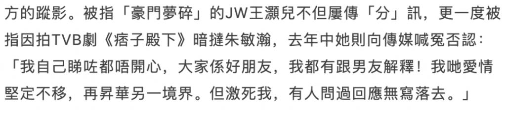 ▲ 跟JW合作过《痞子殿下》的朱敏瀚,成为了头号绯闻对象。