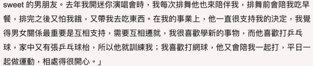 至于"男友是否就是Mr. Right"?她回复,"是,因为跟一个人在一起,就是朝着这个方向行进的。"