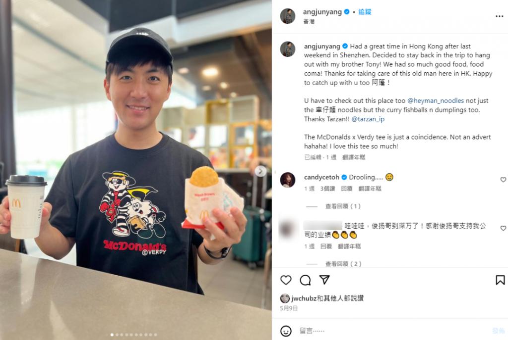 5月初,叶韦彤和新加坡歌手洪俊扬在香港碰面,JW点赞了这条洪俊扬的po文。
