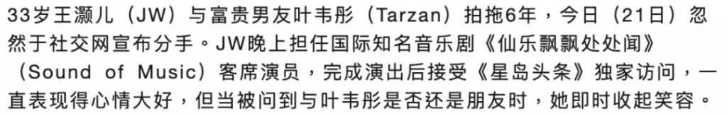 今天就让我们详细开聊这段故事的个中细节,多年的恋情缘何开始又如何结束?为何会扯出JW和小天后邓紫棋的恩怨?还有叶家是怎么走向破产的?媒体又在这段恋情里发挥了怎样的反向作用呢?