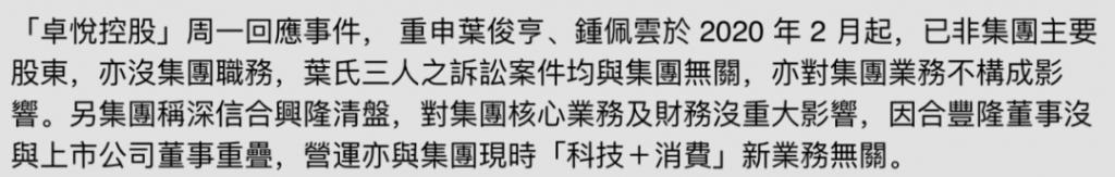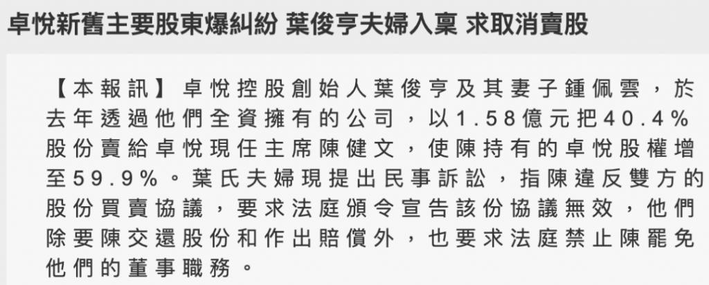 ▲ 因为被踢出管理层,叶俊亨、钟佩云夫妇将陈建文告上了法庭,指责他违反协议,背信弃义。看起来像是商业斗争失败后的苦苦挣扎,却又无力回天。