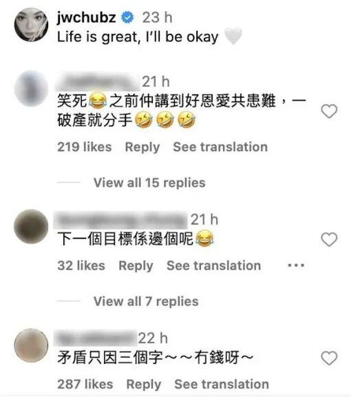 在JW这条官宣分手的评论区,网友们的留言看起来似乎并不太友好:
