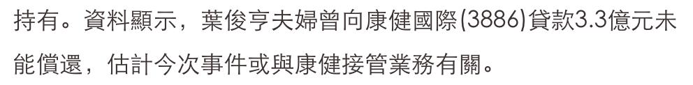 叶俊亨和钟佩云夫妇更是出现了巨大的财务问题。