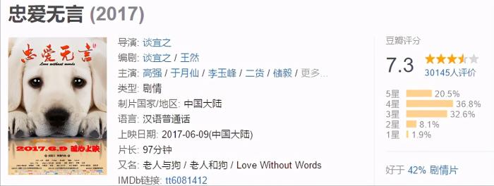 根据真实故事改编,挺感人,催泪能力不高,小狗意外认识了一位性格孤僻的残疾老人,从刚开始的格格不入到最后的相依为命,很接地气,很真实,没有商业气息,诚意满满,希望更多人喜欢,支持国产电影。