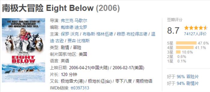改编自1958年日本派遣越冬观测队的真实事件,由弗兰克·马歇尔执导,保罗·沃克等联袂出演 。