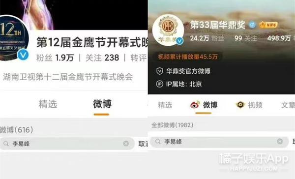 随后有人称去金鹰节和华鼎奖官博搜索李易峰的名字,