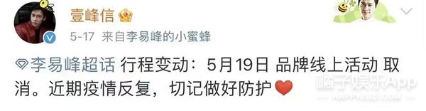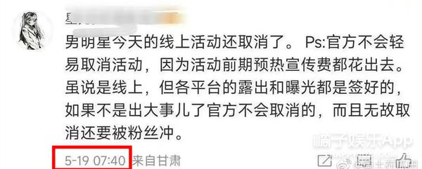 并在 5 月 19 号评论称该男星的线上活动还取消了▼