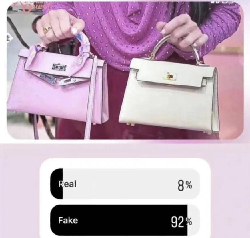 结果九成以上网友都认为她的包是假的