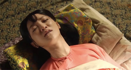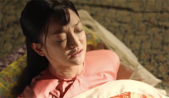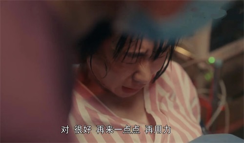 虽然身体很痛苦,但她却丝毫没有发出大喊之声,反而像是在隐忍一般,但依然能够让观众感受到她生孩子的艰难。