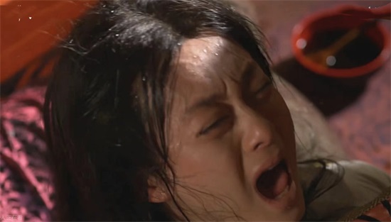 《红高粱》中周迅饰演的九儿为大家贡献了一段极为逼真的生孩子大戏。