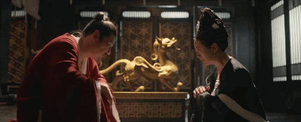 导演采用了平行剪辑的方式:一边,是皇帝见长公主,表面温情婉转,实则暗藏杀机。