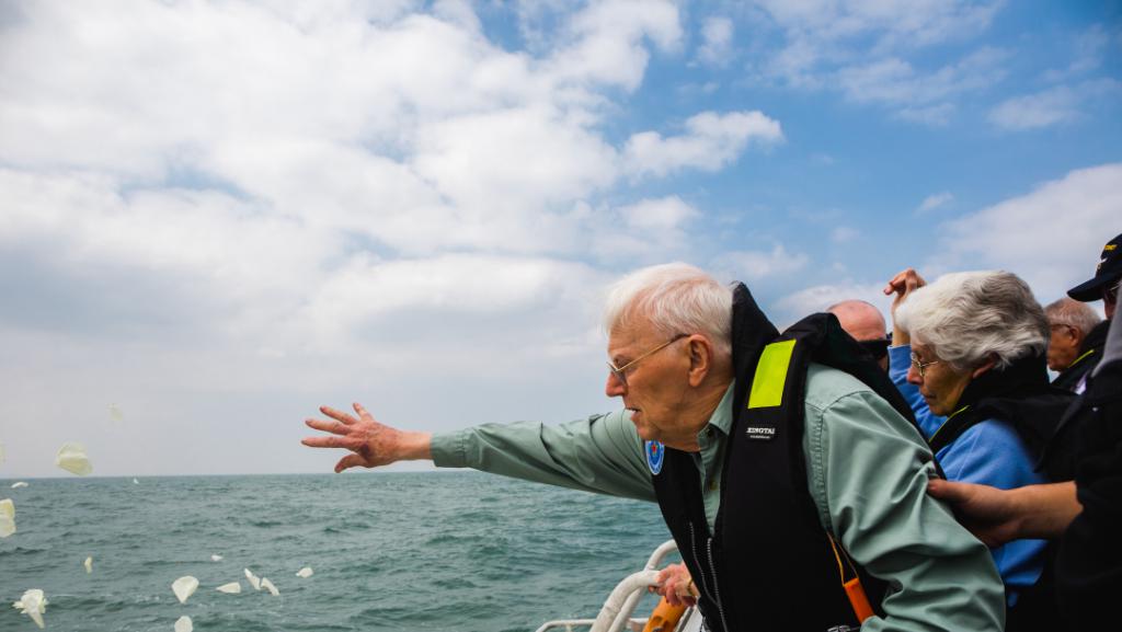 那一天,14 位老人如约而至。当老人们登船,向 " 里斯本丸 " 沉没的海域驶去,屏幕上逐渐显现出沉船的声呐图像时,船舱里陷入了一片肃静,只有抽泣声在空中回荡。