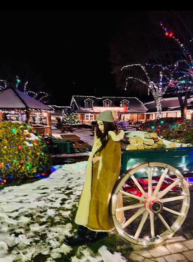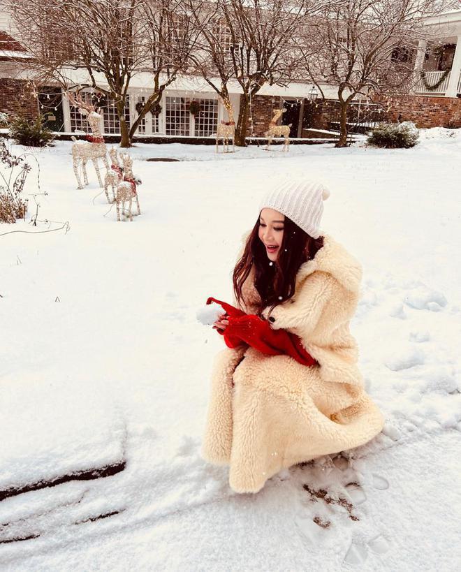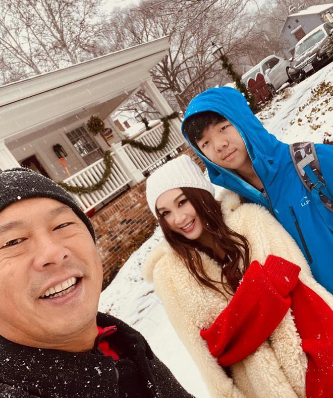 一家人团聚后,温碧霞还与老公、养子一起外出过圣诞节,他们从白天玩到晚上,特别开心。老公何祖光还为温碧霞拍摄多张单人美照,温碧霞蹲在雪地玩雪,靠在木车上低头沉思,宛若童话中走出来的 " 公主 " 一样。