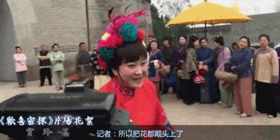 记者开玩笑:" 所以把花都戴头上?争取嫁个好人家。"