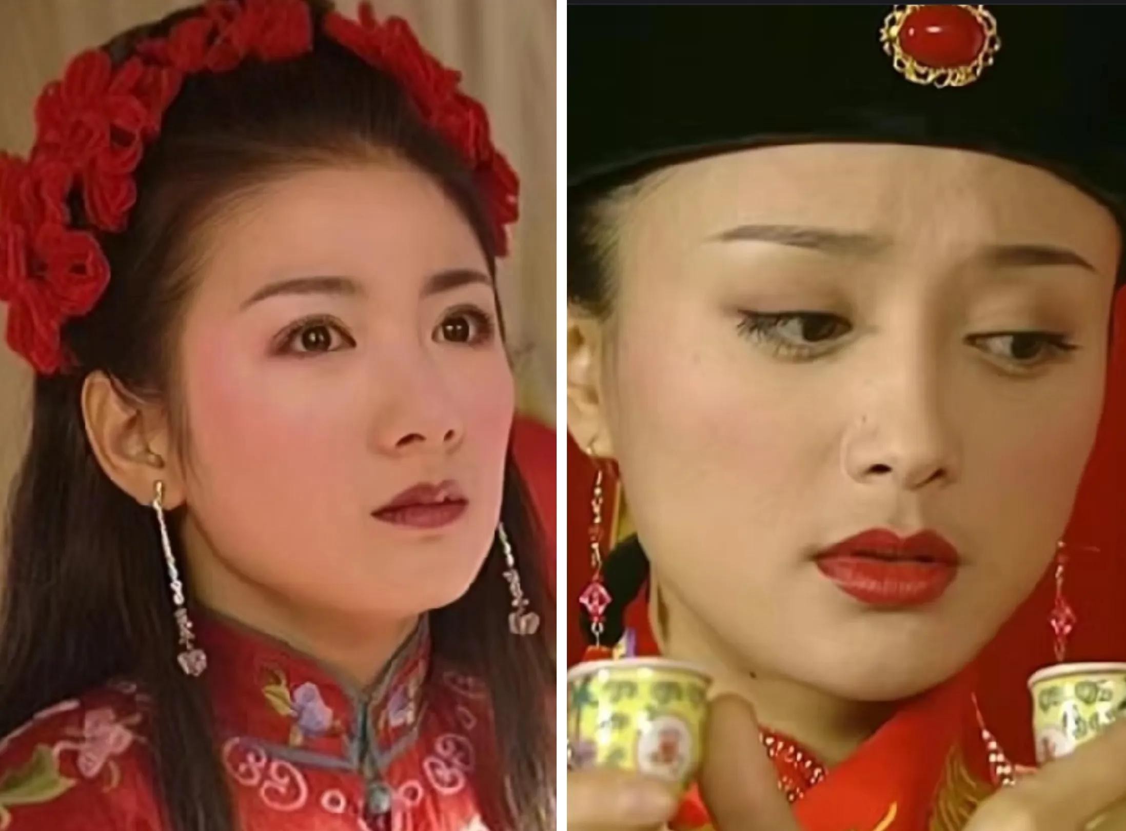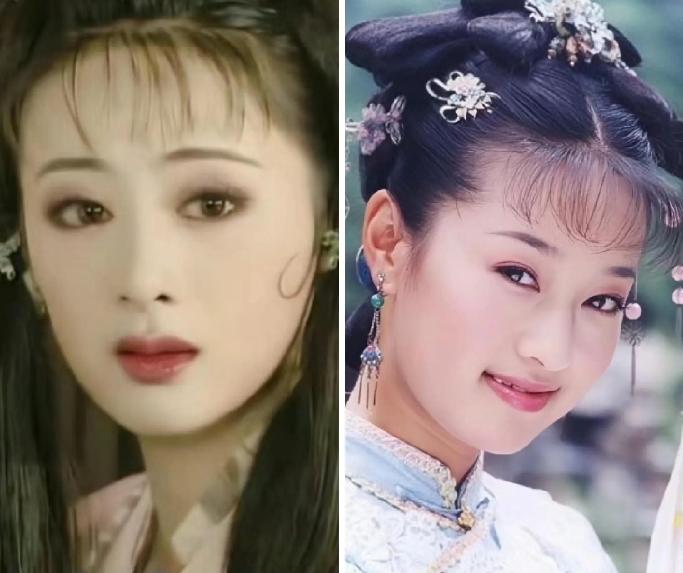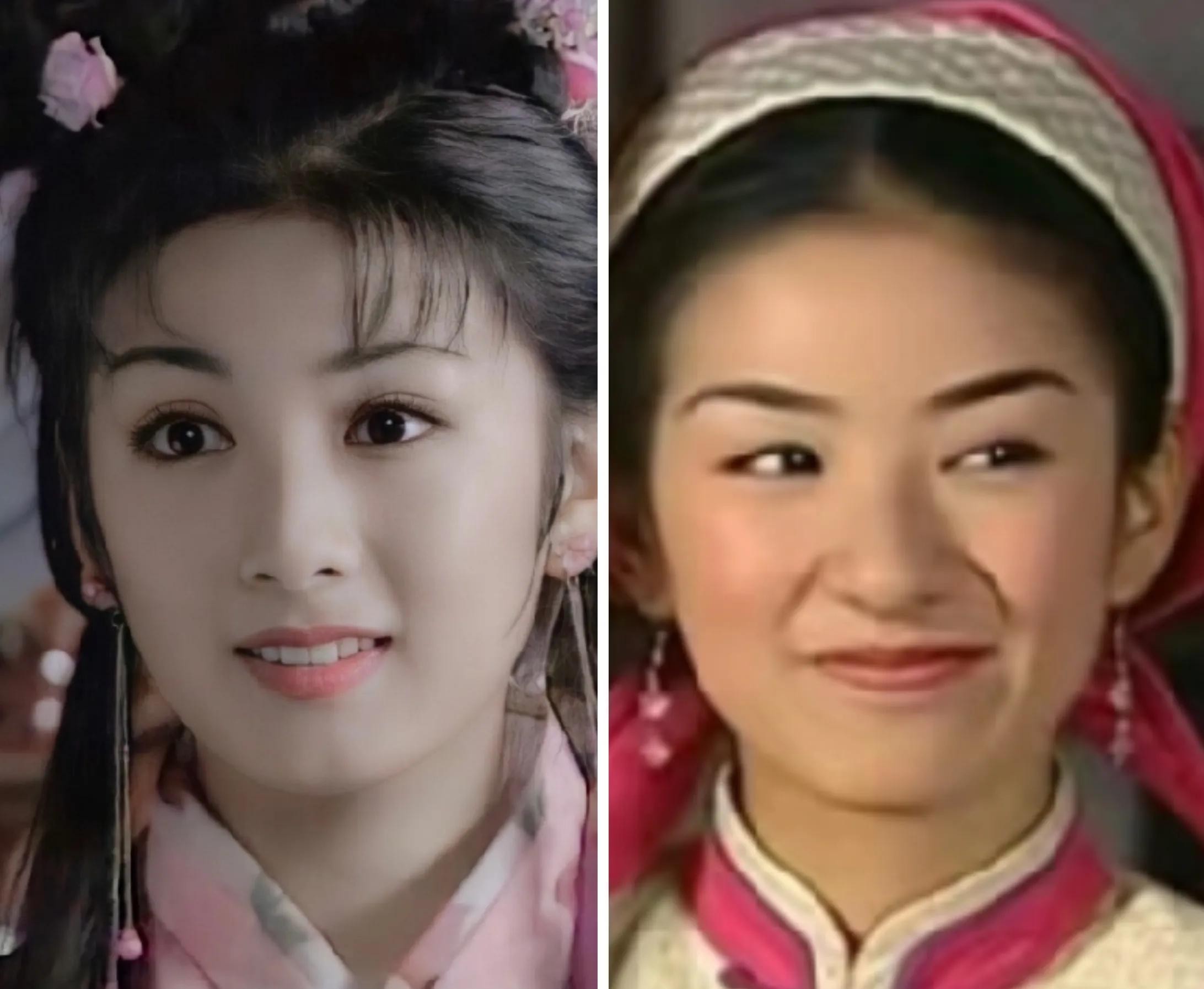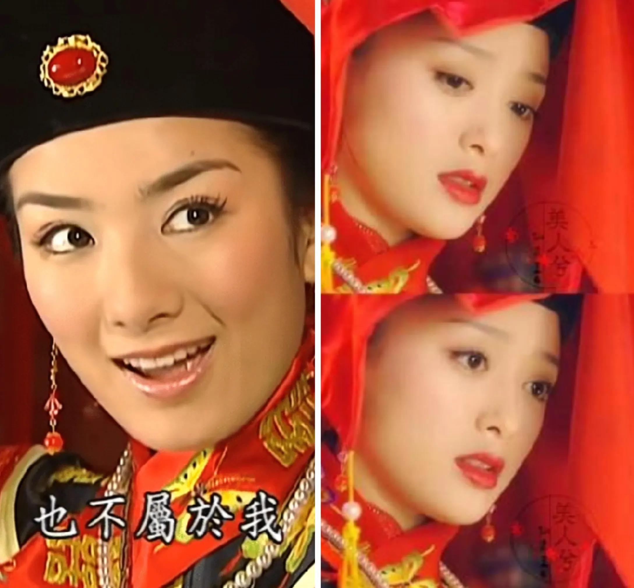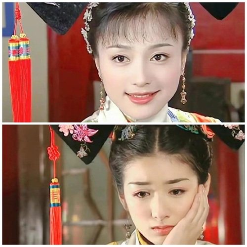 而右图是还珠的小燕子,妆容看上去有点脏脏的感觉,又加上剧情太过于现实,反而显得她的娇俏灵动也不太讨喜了。